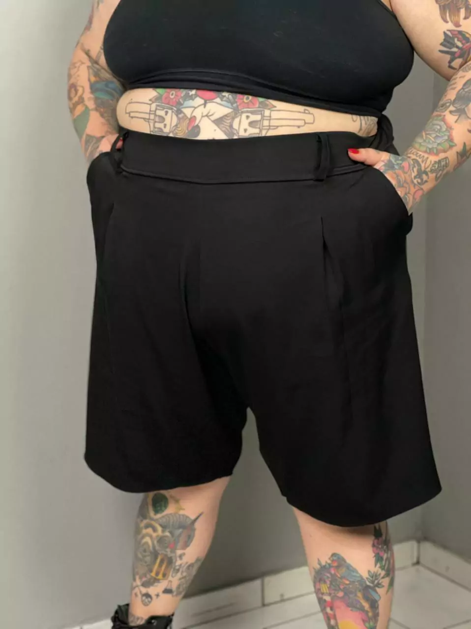 A bermuda de alfaiataria em combina elegância e conforto, perfeita para quem busca um look sofisticado e leve.