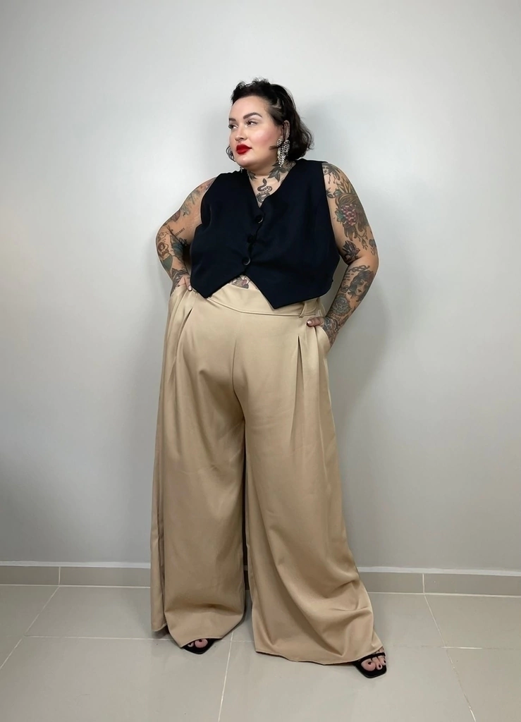 Calça Pantalona em Alfaiataria Plus Size